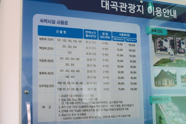 (입장료는 성인 1,000원이며 대곡 관광지 숙박 시 무료입니다.)