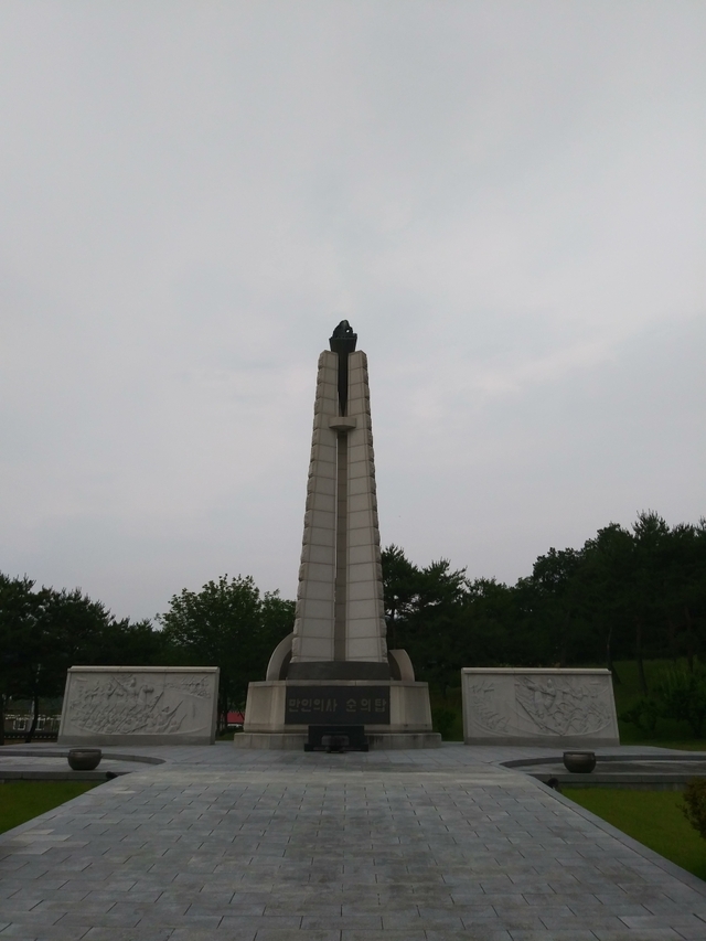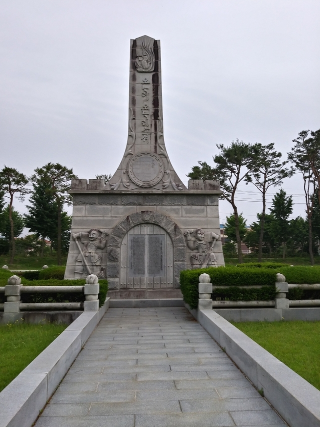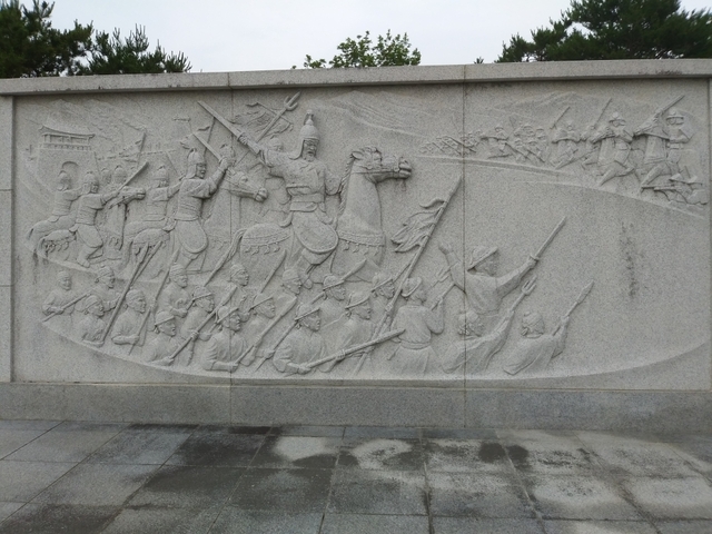 만인의총을 새긴 석비(石碑)를 돌아 정문으로 들어서니, 잘 정비된 너른 터가 가슴에 와 닿습니다. 그렇지요. 죽은 이가 숨 쉬는 무덤의 뜰은 슬픈 곳이지만, 찾는 후손들은 오히려 늘 마음이 푸근해지는 모순의 공간이 여기에도 그대로 적용되나 봅니다. 잘 정비된 길을 따라가다 왼쪽으로 보이는 ‘만인의사 순의탑’ 앞에 섰습니다. 그리고 묵념을 드렸습니다. 비 양쪽에는 장렬한 전투 장면이 부조되어 있었습니다.