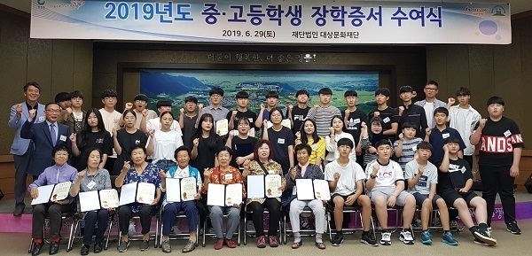 대상그룹 재단법인 대상문화재단(이사장 임창욱)은 지난달 29일 정읍시청 대회의실에서 호남지역 중·고등학생 51명(정읍 30명)에게 장학증서를 수여했다.