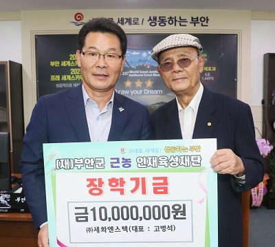 부안 출신으로 인천광역시에서 ㈜세화엔스텍을 운영하고 있는 고병석 대표가 부안군근농인재육성재단에 지역인재 육성을 위한 장학금 1000만원을 기탁했다. 고병석 대표는 2011년부터 근농인재육성재단에 총 6000만원의 장학금을 기탁해 고향사랑을 실천하고 있다.