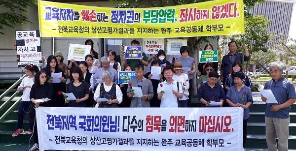 완주교육공동체 학부모 모임(대표 박순정) 30여 명은 2일 완주군청 내 어울림카페 광장에서 기자회견을 열어 “상산고의 일반고 전환을 결정한 전북교육청을 적극 지지한다”고 밝혔다.