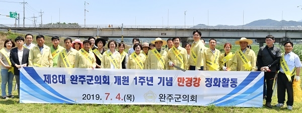 완주군의회(의장 최등원)는 4일 제8대 완주군의회 개원 1주년을 맞아 만경강 정화활동을 벌였다.