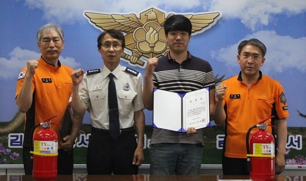 김제소방서(서장 윤병헌)는 4일 소화기로 초기에 화재를 진압해 소중한 생명과 재산을 지킨 서영석 씨(34)에게 표창장과 소화기를 전달했다.