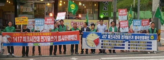 정읍시 수성동 새마을지도자협의회와 새마을부녀회는 최근 여름철을 맞아 ‘1417피크시간대 전기덜쓰기 범시민 거리홍보캠페인’을 펼쳤다.