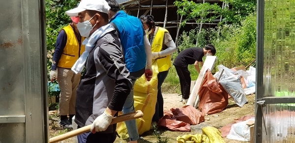 이날 봉사활동에는 진사협, 동향면 좋은이웃들, 진안군복합노인복지타운 노인복지관, 진안군보건소정신건강복지센터팀, 진안군장애인종합복지관, 반월재단정신건강자립지원센터 등에서 자진 참여한 직원 및 봉사자 14명이 출동해 구슬땀을 흘렸다. 이들은 마당에 가득했던 쓰레기를 수거하고 불필요한 물건들을 말끔히 정리했다.