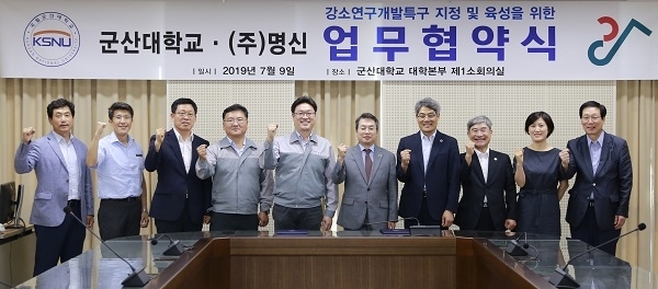 군산대와 ㈜명신은 9일 대학 본부에서 강소연구개발특구 지정 및 육성을 위한 협약을 체결했다.