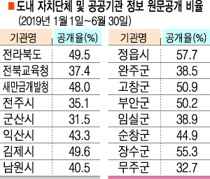 원문공개비율, 전북도 45.5%·전주시 35.1%·군산시 31.5%
