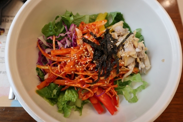 그리고 또 다른 부안 특산물인 바지락을 먹을 수 있는 바지락 비빔밥을 주문해서 먹었는데요. 바지락 비빔밥을 채소에 쌈을 싸서 먹기도 하고, 바지락 비빔밥에 곰소젓갈을 올려서 먹으니 정말 꿀맛이었습니다.