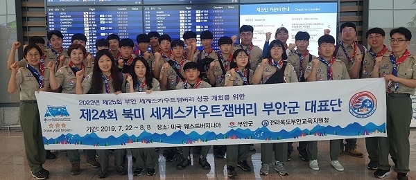부안군은 22일 제24회 북미 세계스카우트잼버리 개최와 관련해 청소년들로 구성된 참가대와 잼버리 프로그램 운영기술 습득을 위한 스터디팀 등을 파견했다.