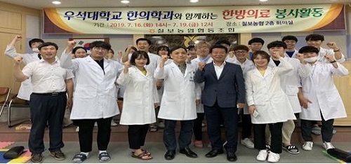 정읍 칠보농협(조합장 권혁빈)과 우석대학교 한의과대는 지난16일부터 19일까지 3박4일 동안 정읍시 칠보면, 산외면, 옹동면, 산내면에서 한방의료 봉사활동을 펼쳤다.