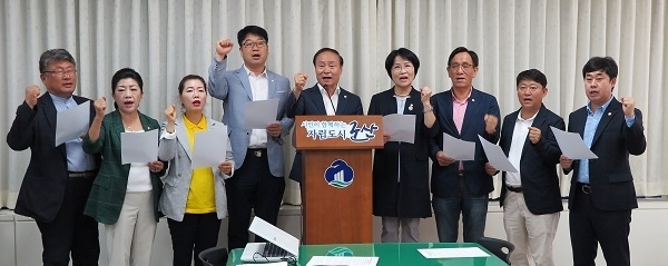 군산시의회(의장 김경구)는 30일 군산시청 브리핑룸에서 기자회견을 열고 “농심은 달면 삼키고 쓰면 뱉는 ‘감탄고토(甘呑苦吐)’ 행위를 즉각 중단하라”고 촉구했다.
