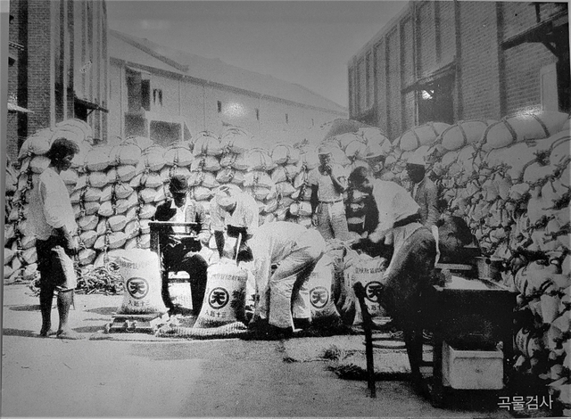 군산은 우리나라의 쌀이 일본으로 몽땅 빠져나갔던 항구입니다. 쌀의 생산증대를 위해 간척과 개발이 계속되었고 기차로 달구지로 쌀이 몰려들었습니다. 품질 좋은 조선미를 수탈하기 위해 곡물검사소에서 정밀한 검사도 이루어졌습니다.