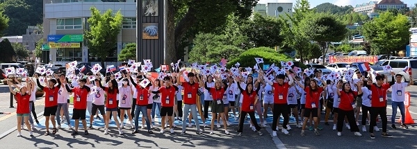 무더운 날씨에도 붉은 홍삼축제 티셔츠를 입은 재외동포 청소년과 지역 청소년들은 우리의 전통 민요인 ‘아리랑’에 맞춰 하나가 됐다. 즐겁게 진행된 퍼포먼스는 지역 주민의 눈길을 사로잡았다.