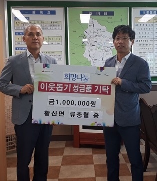 류 대표는 주민화합과 단결을 도모하고 봉사하는 삶을 살아온 부친(류인갑, 황산면 지역사회보장협의체 위원장)의 뜻을 이어 해마다 나눔의 실천을 해오고 있다.