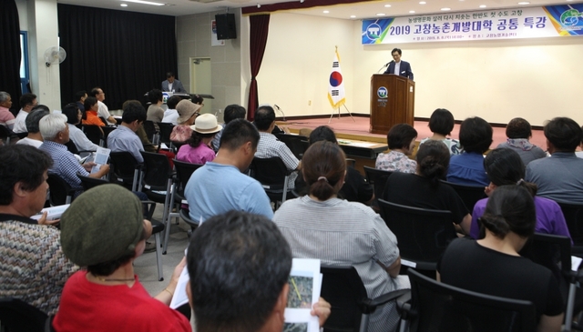 유기상 고창군수가 고창농촌개발대학에서 “한국농업을 리더하는 고창농업의 도전과 발전전략”이라는 주제로 특강했다. 특강은 지난 8일 고창농촌개발대학 주관으로 고창군농업기술센터에서 교육생 200여 명을 대상으로 열렸다.