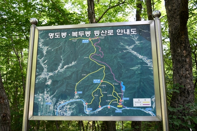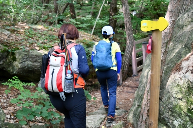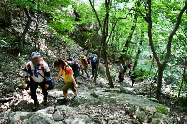 등산로 입구 경사진 산길에서 시작해 가파른 철계단, 밧줄을 잡고 암벽을 이동하는 가파른 산행코스인 명도봉, 복두봉은 등산을 즐기시지 않는 분들은 힘드실 수 있습니다. 여러 산 등반으로 기초체력을 기르신 분들께 알맞은 코스예요. ‘실력파 등산가’라면 안전장비 갖추시고, 도전해 보시기 바랍니다.