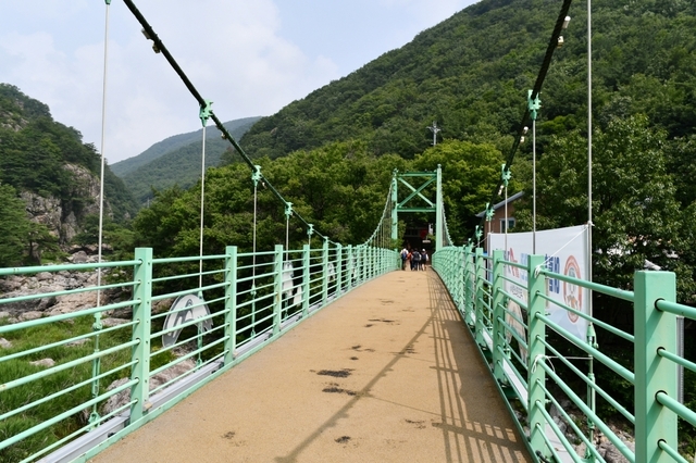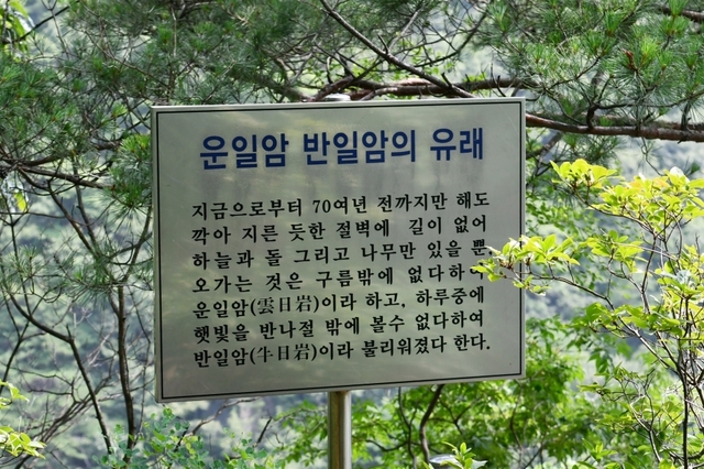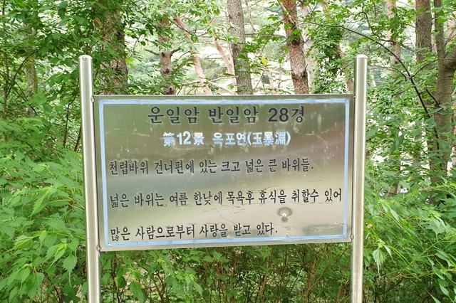 운일암반일암 안에 자리한 숲길을 따라 걷는 짧은 구간으로 전망대와 무지개 다리에서 운일암반일암을 바라보고 나무데크로 이어진 천변의 아름다운 풍경을 볼 수 있습니다.