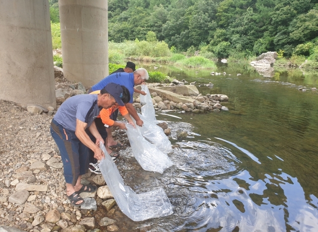 진안군이 용담호와 읍·면 공공 용수면 40여 곳에 내수면 수역 특성에 알맞은 어류의 치어를 선정, 35만마리가량 방류했다. 방류는 지난 5, 6, 8일 각 1회씩 3회에 걸쳐 실시됐다.