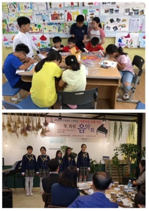 체험·감상·표현 중심 문화예술교육을 위해 ‘아름다운노래사랑(2019전라북도교육청주민제안사업)’을 운영하며 ‘글 노래 마당’과 ‘아노사 교육과정’ 뿐 아니라 매주 주민과 함께하는 가곡교실·음악회를 여는 등 우리 아이들이 진정한 인간기술을 배우고 예술적 재능과 끼를 마음껏 발산하도록 하고 있다.