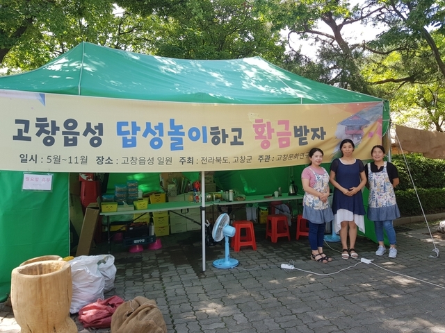 고창읍성 매표소 옆 신재효 고택 옆에서 운영 중인 ‘고창읍성 답성놀이 하고 황금받자’에요.
