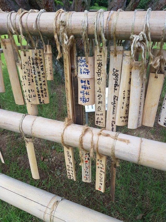 그리고 또 한 가지! 성안의 맹종죽으로 소원을 기원하는 대나무 패 적는 곳이 있어요.