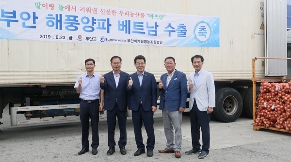 군은 전국적인 양파 과잉생산에 따른 가격 폭락으로 어려움을 겪고 있는 농가의 고민을 덜어주기 위해 부안마케팅영농조합법인을 통해 해외 수출 방안을 모색한 끝에 베트남 수출이라는 큰 결실을 맺게 됐다.