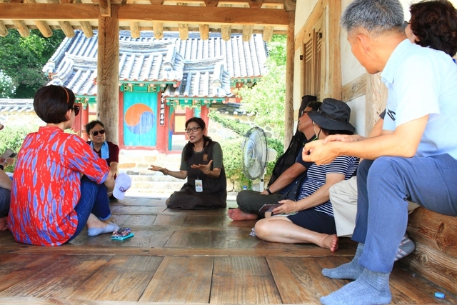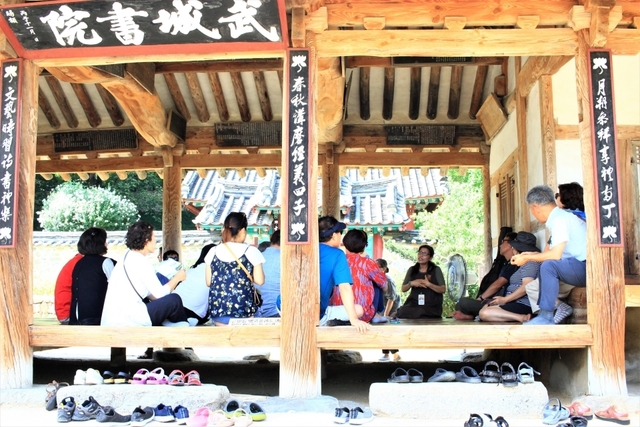 무성서원에서는 시간을 정해 문화관광해설사 해설 프로그램을 운영하고 있었습니다. 날씨가 더운 날이었지만 강당에 앉아 선풍기 바람을 쐬고 있으니까 그리 더운 줄 모르겠습니다. 해설사의 설명이 귀에 쏙쏙 들어옵니다. 무성서원에는 예와 악으로 다스리는 공자의 사상과 애민사상이 담긴 곳입니다. 서원이 있는 위치가 한적한 숲 속에 있지 않고 마을에 있는 것도 애민사상에서 나온 것이랍니다.
