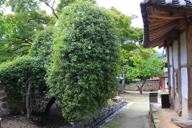 태산사에서 나와 강당의 동쪽으로 나오는데 멋진 수형의 나무 덩굴이 인상적입니다. 마삭줄입니다. 덩굴식물이지만 나무에 기대어 큰 나무와 같은 모양이 되었습니다. 6월 초 방문했을 때에는 바람개비를 닮은 하얀 꽃이 달려있었던 기억이 있습니다.