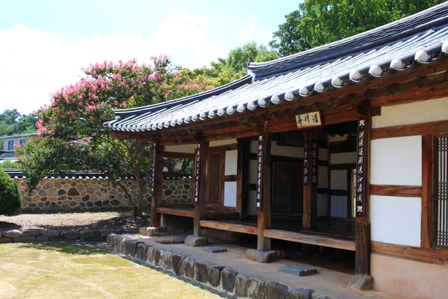 기적비 앞쪽 동편에 있는 건물은 고직사(庫直舍)로 서원 관리인이 거주하는 공간입니다. 서원의 향사 시 필요한 제수품을 준비하고 서원의 살림을 관리하는 공간이었습니다. 지금은 해설사 사무실로 사용하고 있네요.