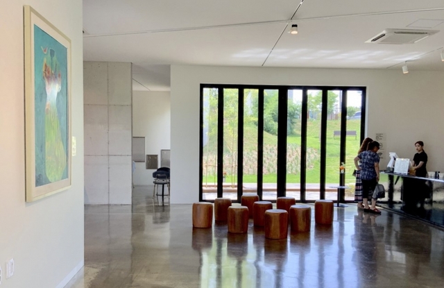 건물은 총 3관으로 이루어져 있습니다. 본관에서 바로 넘어갈 수 있는 2관으로 들어서니 숲 풍경이 액자 속 그림처럼 보이는 감각적인 공간이 나옵니다.