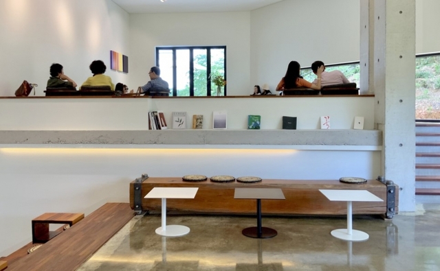 아기자기하고 빈티지한 소품들, 갤러리에 어울리는 소품들도 가득하고요. 유리창 너머로 싱그러운 풍경이 펼쳐져 휴식을 취하기에 안성맞춤입니다.