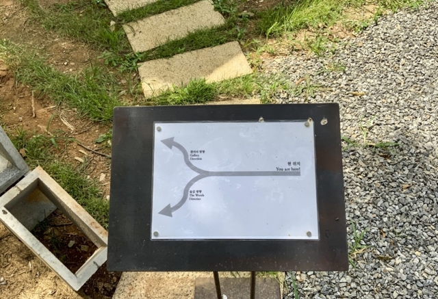 2관을 다 구경하고 연결된 문으로 나서니 3관이 보입니다. 3관 옆으로는 ‘휴식’이라고 적힌 안내판도 보이는데요. 이 길을 걸으며 숲 속 산책을 즐길 수 있다고 합니다. 초가을이 되면 적당히 바람도 불고 한적해서 걷기 좋을 것 같습니다.