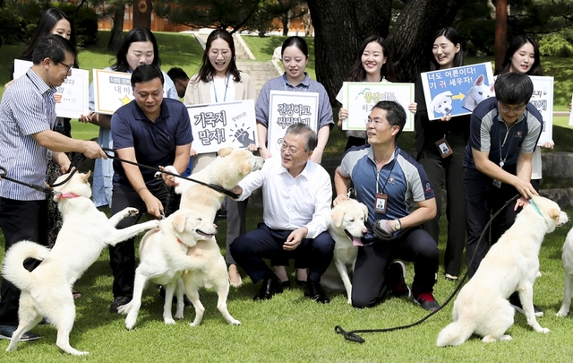 청와대는 “곰이가 낳은 강아지 6마리가 오늘 마지막 청와대 산책을 한 뒤 이제 서울, 인천, 대전, 광주 4개 지방자치단체로 이사간다”고 밝혔다.