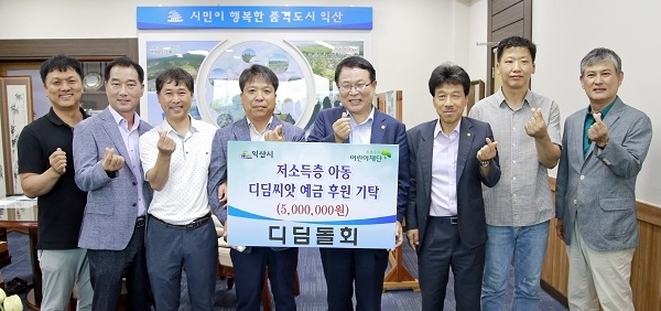 사적 친목모임인 디딤돌회(회장 박인배)도 같은날 정헌율 시장을 찾아 저소득층 아동 100명에게 5개월 동안 1만원씩의 500만원을 디딤씨앗통장 예금으로 후원키로 약속했다.