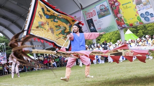 장수깃절놀이 공연이 ‘제13회 장수한우랑사과랑 축제’ 둘째 날인 7일 오후 1시부터 장수군 종합경기장에서 시연된다.