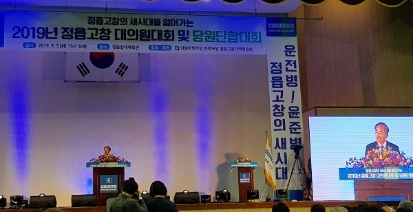 더불어민주당 정읍고창지역위원회는 3일 정읍실내체육관에서 ‘2019년 대의원대회및 당원단합대회’를 개최해 내년에 실시되는 21대 총선 승리를 다짐했다.