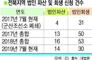 군산조선소·GM공장 폐쇄 여파 파산·회생 신청 증가