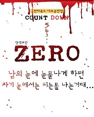 한옥마을아트홀은 ‘남의 눈에 눈물 나게 하면 내 눈에는 피눈물 난다’는 주제로 전매특허 스릴러 연작의 4번째 작품 ‘ZERO(제로)’를 오는 6일부터 2개월간 공연한다고 밝혔다. 평일 오후 7시 30분, 토요일 오후 3시와 7시.