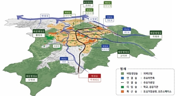 시는 산림·공원과 도시 숲을 선형으로 연결하는 바람길 숲이 조성되면 도시 외곽 산림에서 생성되는 맑고 신선한 깨끗한 공기를 도심으로 끌어들여 공기순환을 촉진하고 미세먼지를 줄일 수 있을 것으로 기대하고 있다.