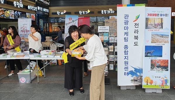 장수군이 가을 여행주간을 맞아 여산휴게소 하행선 방향에서 귀향객을 대상으로 장수군 주요 관광지를 알리는 캠페인을 전개했다.