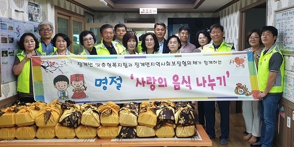 장수군 장계면 지역사회보장협의체(공동위원장 류지봉·임재성)가 지난 11일 추석명절 사랑의 음식나누기 행사를 진행했다.