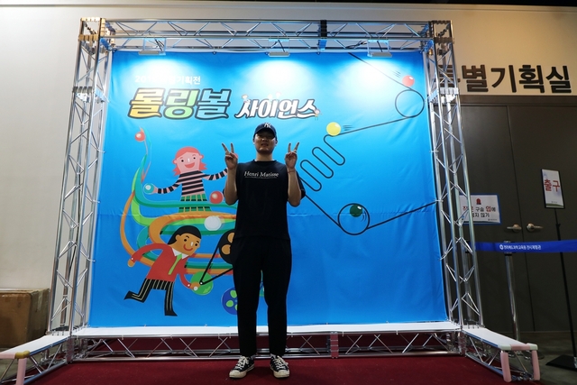 롤링볼 사이언스 전시관 앞에는 롤링볼사이언스 특별기획전을 기념하는 대형 포토존이 있어 아이들이 각자 귀여운 포즈로 인증샷을 찍는 모습을 볼 수 있었습니다.