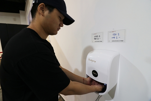 많은 전북도민이 오가는 체험관이다 보니 청결을 위해 체험 전 전시담당자분의 안내에 따라 자동소독기에 손소독을 깨끗하게 한 후 입장합니다.