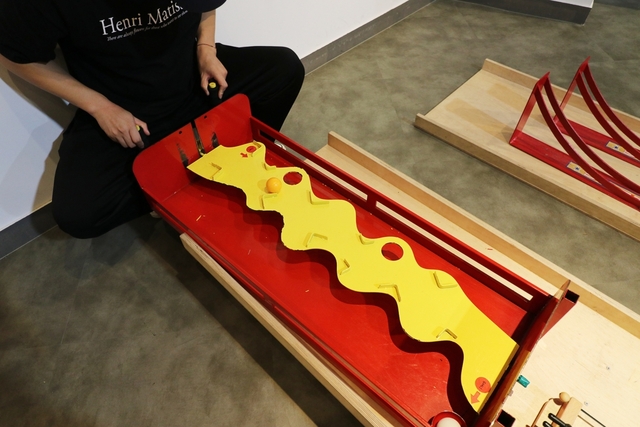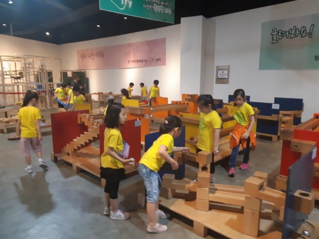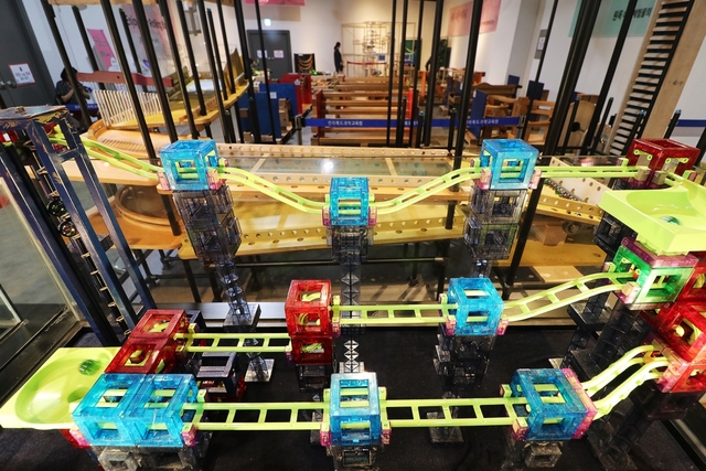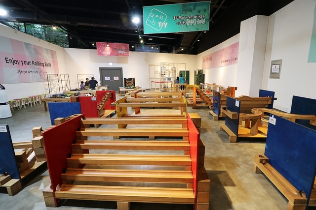 전시관 뒤 놀이관으로 이동하면 롤링볼 작동 메커니즘을 직접 체험해볼 수 있습니다. 움직임을 중시하거나 그것을 주요 요소로 하여 작품 그 자체가 움직이거나 움직이는 부분을 넣은 예술 작품인 키네틱 아트(Kinetic Art)를 직접 체험해볼 수 있어 어린이집, 유치원 등 단체관람객 대상으로 매우 인기가 많다고 합니다.