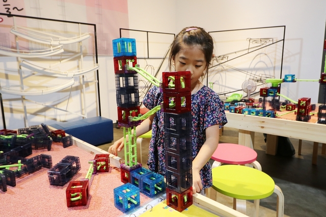 국내에서는 물론 해외에서도 인정받는 창의 블록인 큐볼루션 놀이도 즐길 수 있었습니다. ‘큐볼루션’은 큐브(Cube) + 볼(Ball) + 에볼루션(Evolution)이 합쳐진 단어로, 스스로 설계하고 만든 레일을 통해 구조와 움직임에 대한 자신만의 새로운 발견을 경험할 수 있습니다. 큐브의 디자인과 연결 방식을 통해 3차원적인 공감각을 키울 수 있으며 수학적 추론과 논리적 두뇌 발달을 키우고, 중력과 원심력, 작용 반작용 등의 과학 법칙을 경험하는 큐볼루션은 아이들뿐만 아니라 성인이 즐기기에도 매우 흥미로운 놀이입니다.