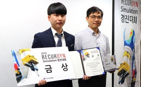 전북대학교(총장 김동원) 기계공학과 김동연·김도원 대학원생(지도교수 임재혁)이 동역학 소프트웨어 전문업체인 펑션베이(FunctionBay) 주최로 최근 열린 ‘2019 리커다인(RecurDyn) 시뮬레이션 경진대회’에서 영예의 1위인 금상을 수상했다.