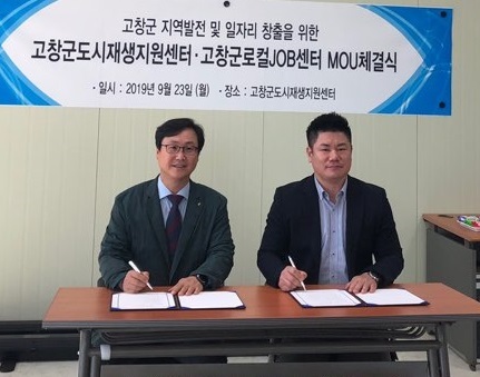 고창군 로컬JOB센터(센터장 김희진)는 23일 고창군 도시재생지원센터(센터장 황지욱)와 지역발전과 일자리 창출을 위한 업무협약을 체결했다.