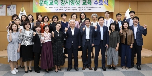 무주군이 일자리 창출을 위해 진행했던 직업교육 훈련을 통해 문해교육 강사 19명을 배출했다고 밝혔다.