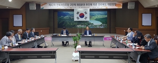 전북도는 정부의 재정 분권 2단계 추진에 따른 대응 방안을 논의하기 위해 재정 분야 전문가, 관계 공무원 등 70여 명이 참석한 가운데 ‘제42차 전북재정포럼’을 정읍시청 대회의실에서 개최했다.