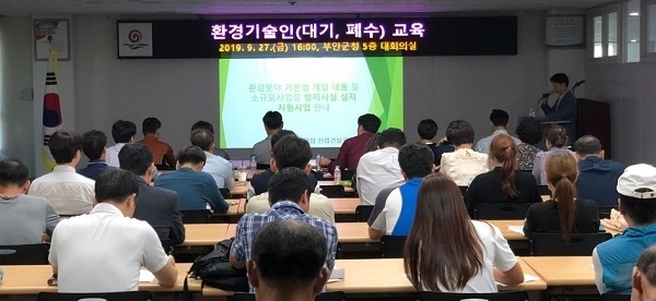 부안군은 지난달 27일 환경관련법 개정에 따라 환경오염 배출사업장의 변경되는 법 사항과 잦은 위반행위에 대해 환경기술인 교육을 실시했다. 이번 교육은 대기와 폐수 배출사업장 환경기술인을 대상으로 실시했다. 주요 내용은 2020년도 환경관련법 개정사항과 소규모 사업장 방지시설 설치 지원사업에 대한 안내다. 이에 법령 개정과 관련해 사업장에서 환경오염물질 배출 허용기준과 환경관리 시스템에 대한 이해도를 높이고, 법 시행 이전에 원활한 준비를 할 수 있도록 환경관리인들에게 개정 사항을 설명했다. 또한, 대기분야 배출허용기준 강화에 발맞춰 내년도에 시행될 예정인‘소규모 사업장 방지시설 설치 지원사업’은 사업장의 큰 관심을 받았다. 본 사업은 소규모 사업장의 노후 대기오염 방지시설 개선 및 설치비용을 지원하는 사업으로‘미세먼지’등 대기환경개선을 위해 시행될 계획이다. 군은 내년도 환경 관련법 개정안 사전홍보를 통해 사업장들의 오염행위를 사전에 예방토록 지도하고, 개정된 기준에 맞춰 오염물질 불법 배출행위를 집중 점검하는 등 순찰을 강화할 계획이다.